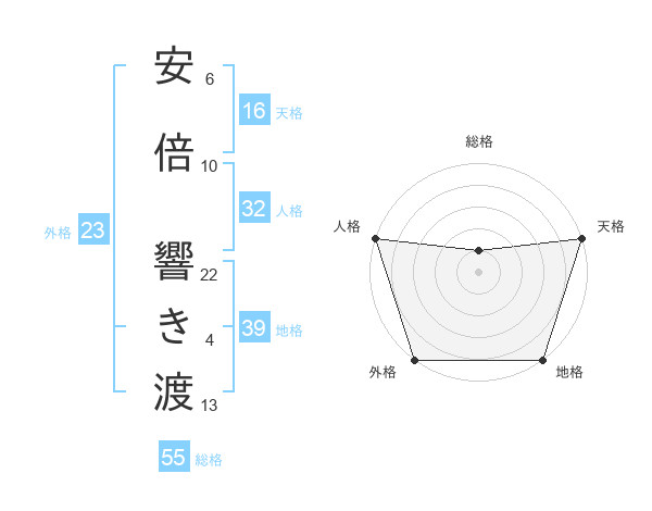 安倍 響き渡さんの総格は55画の1点!