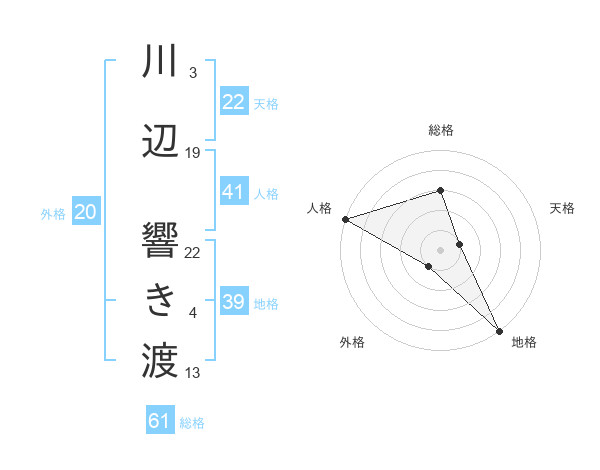 川辺 響き渡さんを姓名の画数から五運を鑑定