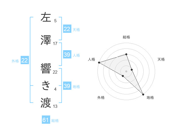 左澤 響き渡さんを姓名の画数から五運を鑑定