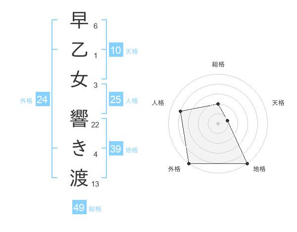 早乙女 響き渡さんの総格は49画の2点!