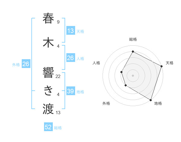 春木 響き渡さんの総格は52画の4点!