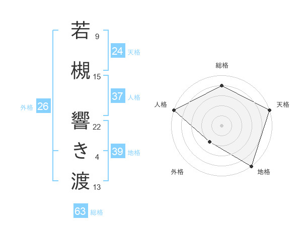 若槻 響き渡さんを姓名の画数から五運を鑑定