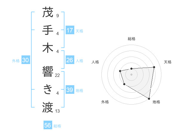 茂手木 響き渡さんを姓名の画数から五運を鑑定