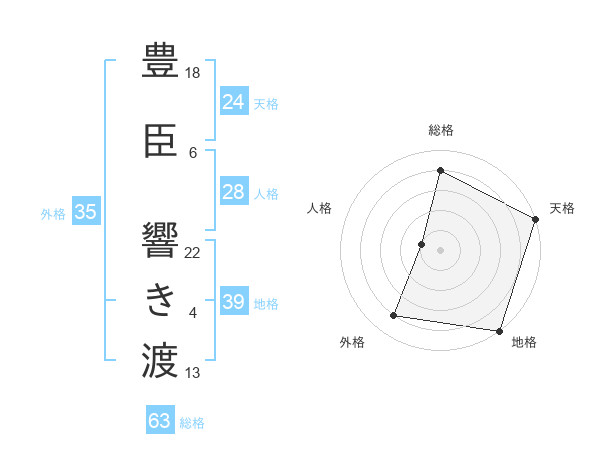 豊臣 響き渡さんを姓名の画数から五運を鑑定