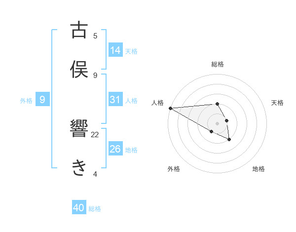 古俣 響きさんの総格は40画の2点!