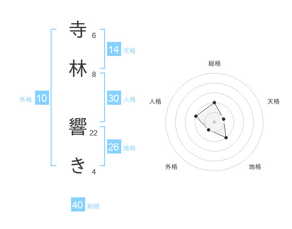 寺林 響きさんの総格は40画の2点!