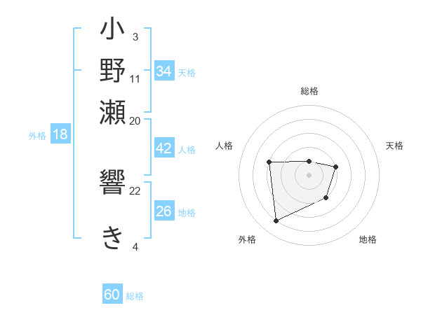 小野瀬 響きさんを姓名の画数から五運を鑑定