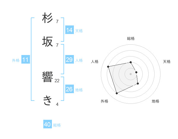 杉坂 響きさんの外格は11画の4点!