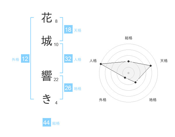 花城 響きさんの総格は44画の2点!