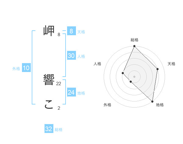 岬 響こさんの総格は32画の5点!