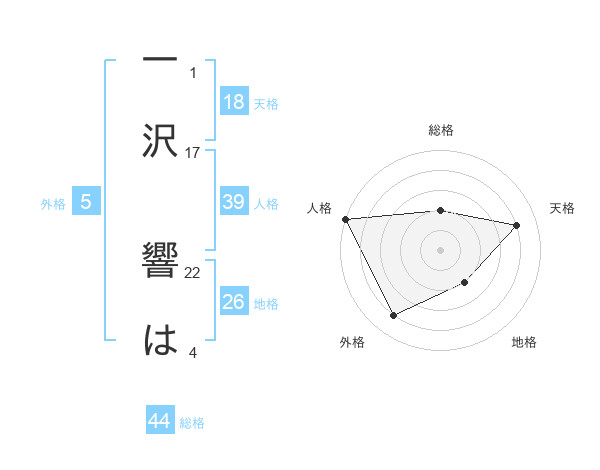 一沢 響はさんの総格は44画の2点!