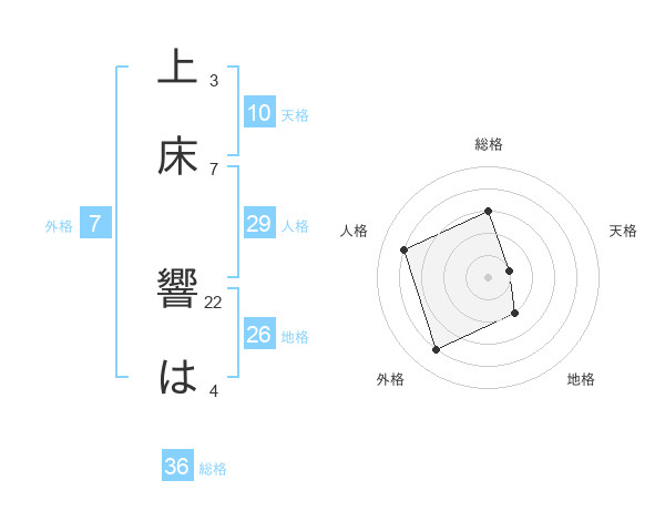 上床 響はさんの地格は26画の2点!