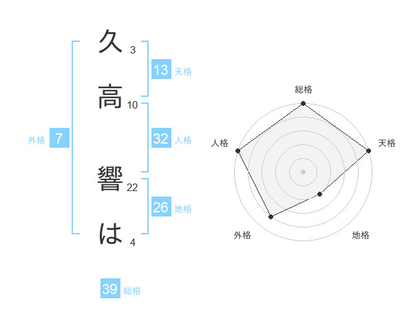 久高 響はさんの総格は39画の5点!