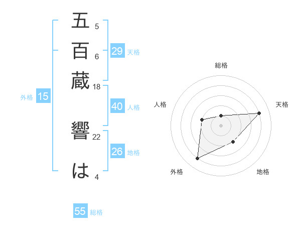 五百蔵 響はさんを姓名の画数から五運を鑑定