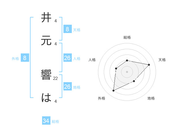井元 響はさんの天格は8画の4点!
