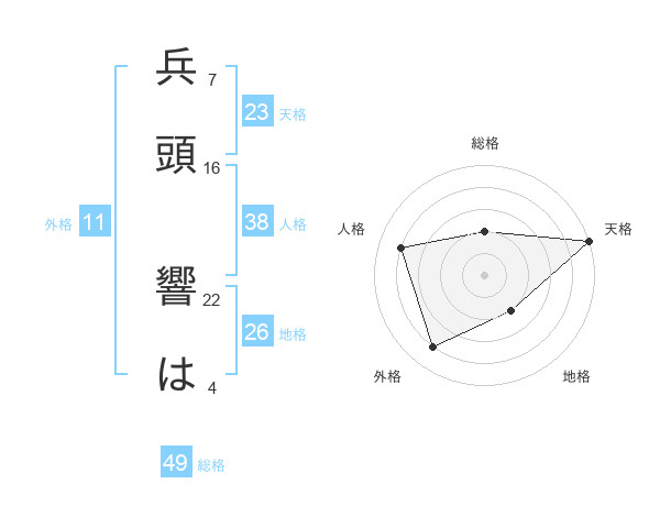 兵頭 響はさんを姓名の画数から五運を鑑定