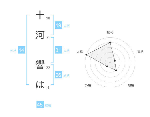 十河 響はさんの総格は45画の4点!