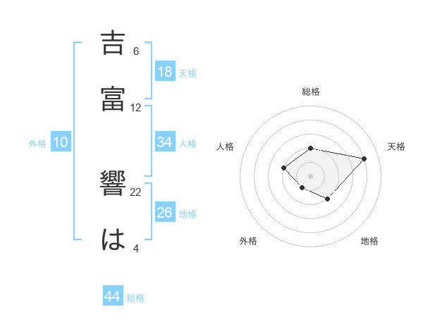 吉富 響はさんの総格は44画の2点!