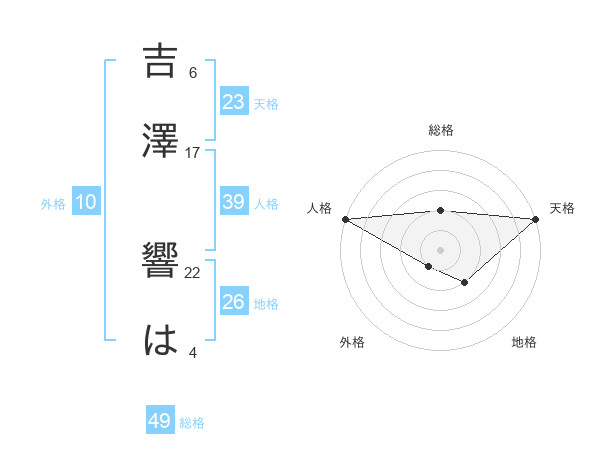 吉澤 響はさんを姓名の画数から五運を鑑定