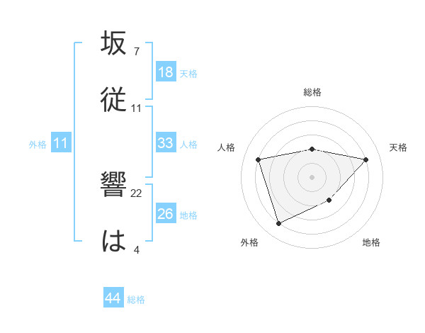 坂従 響はさんの総格は44画の2点!