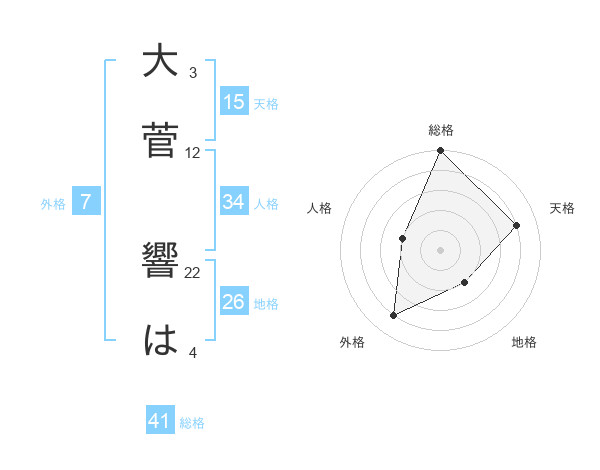 大菅 響はさんの天格は15画の4点!