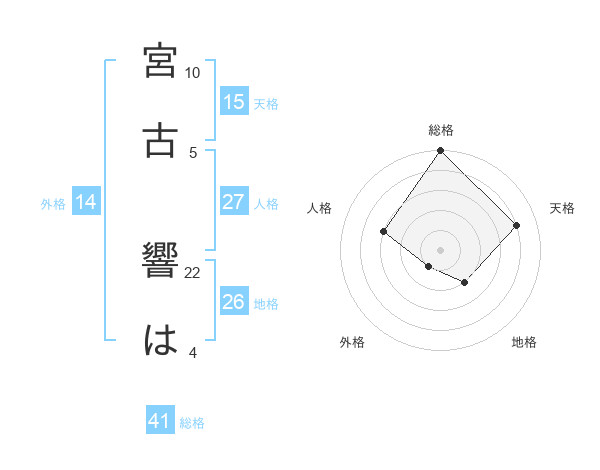 宮古 響はさんの総格は41画の5点!