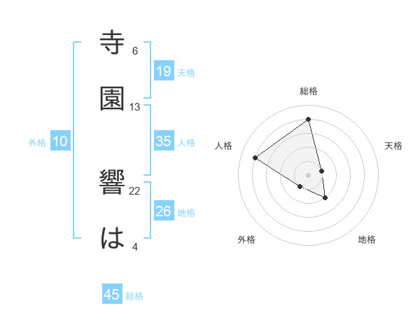 寺園 響はさんの総格は45画の4点!