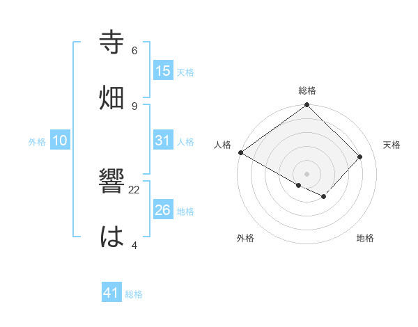 寺畑 響はさんを姓名の画数から五運を鑑定