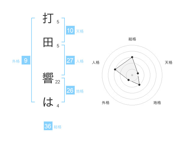打田 響はさんの総格は36画の3点!