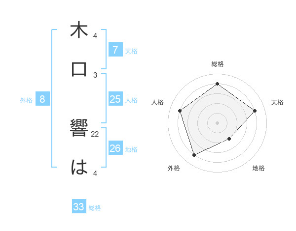 木口 響はさんの総格は33画の4点!