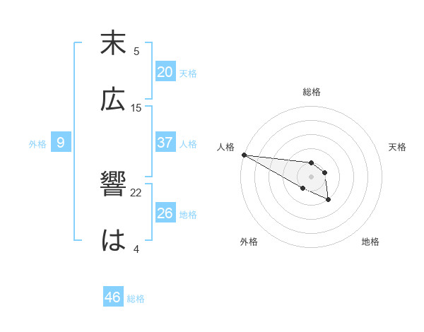 末広 響はさんの天格は20画の1点!