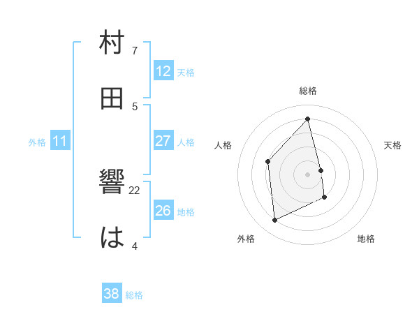 村田 響はさんの総格は38画の4点!