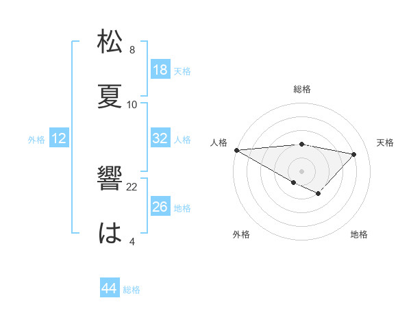 松夏 響はさんの総格は44画の2点!