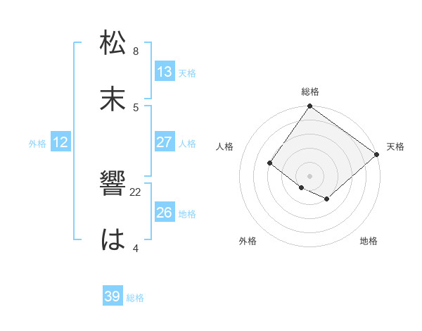 松末 響はさんの総格は39画の5点!