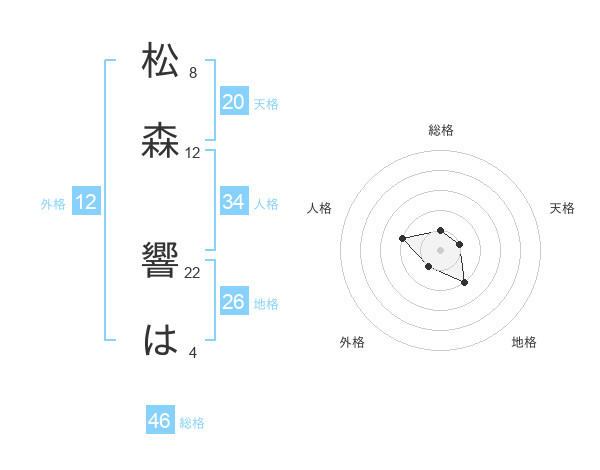 松森 響はさんを姓名の画数から五運を鑑定