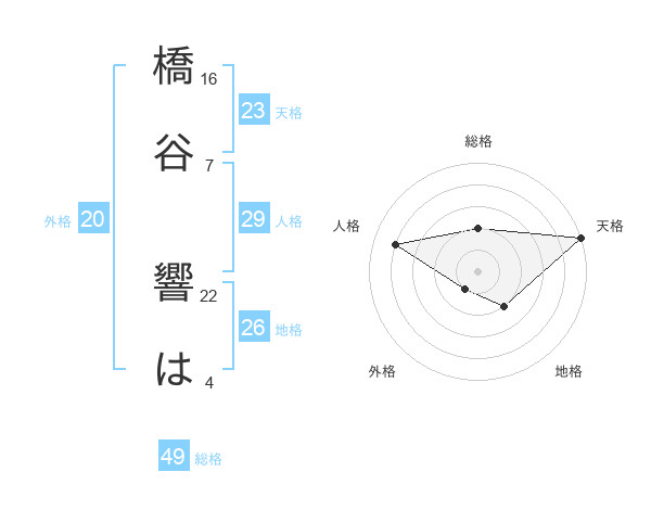 橋谷 響はさんを姓名の画数から五運を鑑定