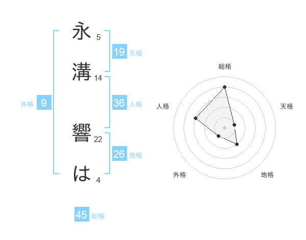 永溝 響はさんの総格は45画の4点!