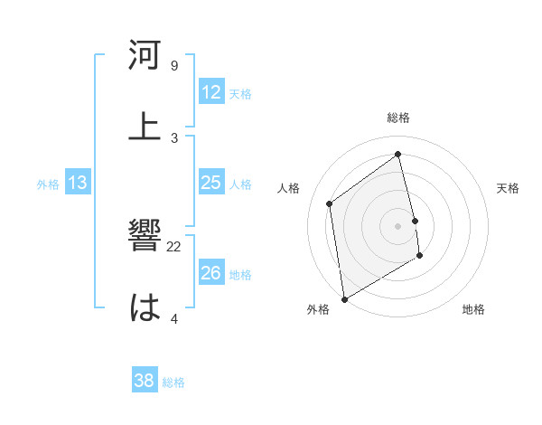 河上 響はさんの総格は38画の4点!