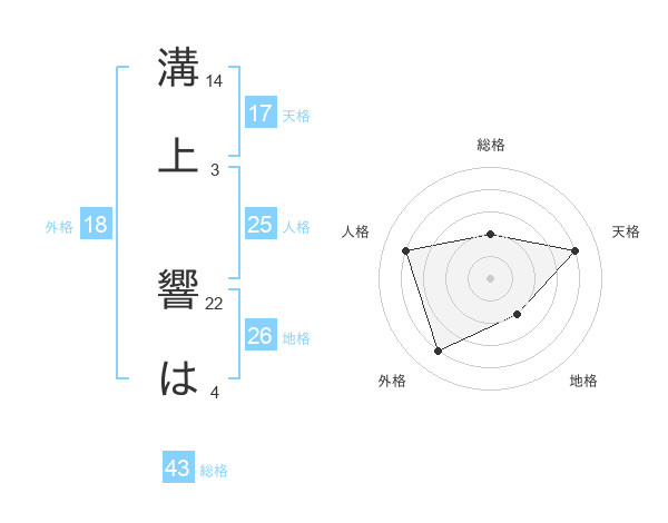 溝上 響はさんの総格は43画の2点!
