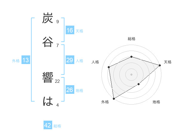 炭谷 響はさんの総格は42画の3点!
