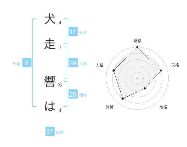 犬走 響はさんの総格は37画の5点!
