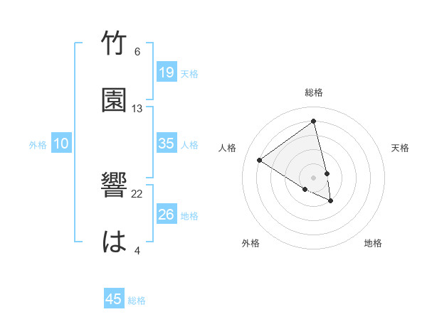 竹園 響はさんの総格は45画の4点!