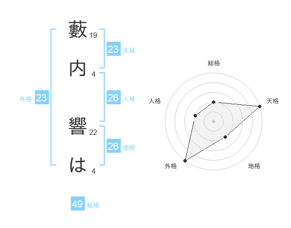 藪内 響はさんの外格は23画の5点!