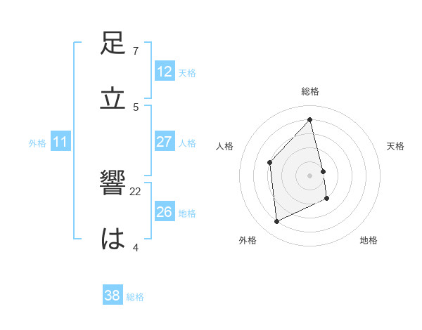 足立 響はさんの総格は38画の4点!
