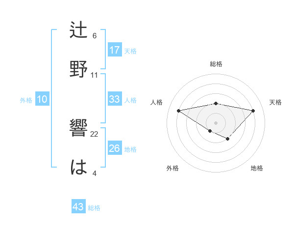 辻野 響はさんの天格は17画の4点!