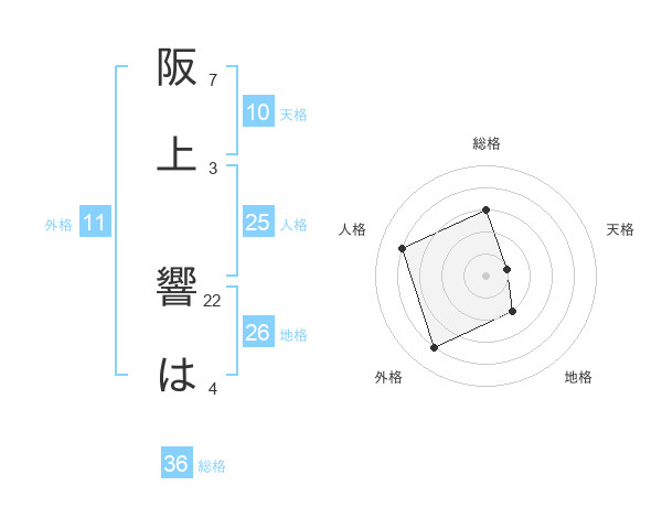 阪上 響はさんの地格は26画の2点!