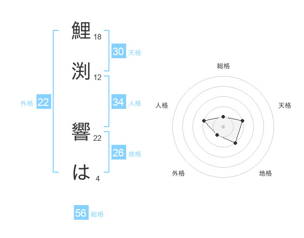 鯉渕 響はさんの総格は56画の1点!