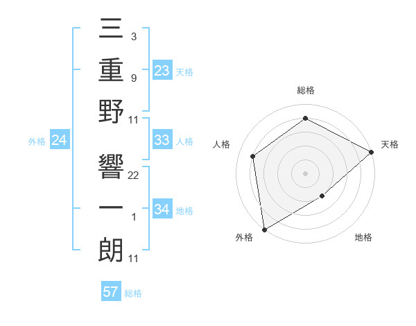 三重野 響一朗さんを姓名の画数から五運を鑑定