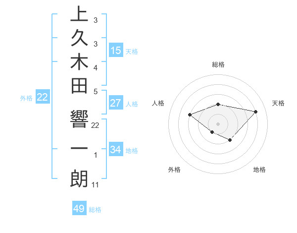 上久木田 響一朗さんを姓名の画数から五運を鑑定