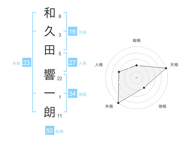 和久田 響一朗さんを姓名の画数から五運を鑑定